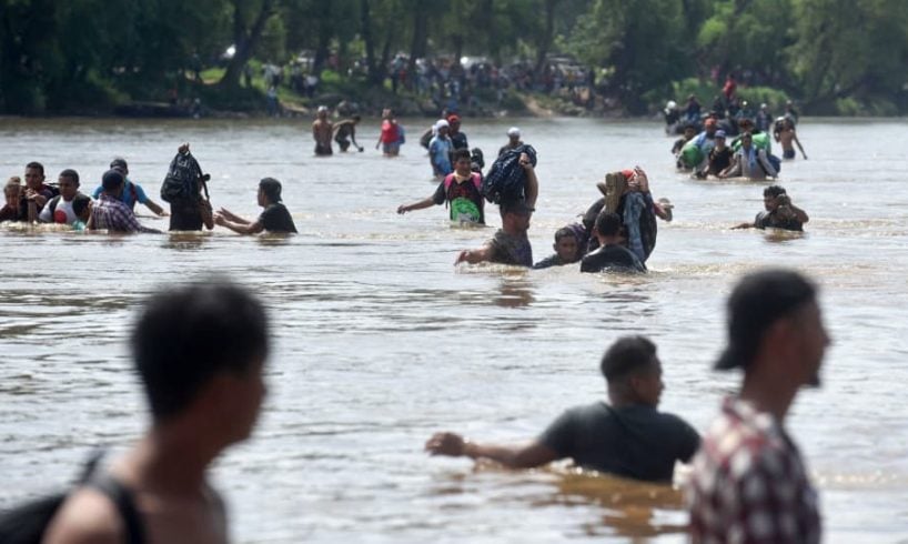These migrants, including women and children, arrived in Tapachula on Tuesday, where they spent the night, after traveling 33 miles. On Monday they crossed the Suchiate river after being turned away by the Mexican police on the border bridge.
